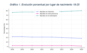 • Los nacidos en Asturias en el exterior siguen descendiendo: 26.872 (-7,4% desde 2018).
